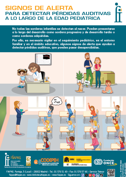 No todas las sorderas infantiles se detectan al nacer. Pueden presentarse a lo largo del desarrollo como sordera progresiva y de desarrollo tardío o como sorderas adquiridas. Por ello, es necesario vigilar en el seguimiento pediátrico, en el entorno familiar y en el ámbito educativo, algunos signos de alerta que ayudan a detectar pérdidas auditivas, que pueden pasar desapercibidas.